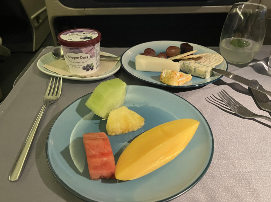 特にデザートタイムはまさに至福。 綺麗に盛り付けられたチーズのセットに、みずみずしいフルーツ、そしてみんな大好きハーゲンダッツ。これらを芳醇なワインと一緒にゆっくりと味わう時間は、まさに大人の贅沢。心の中で「あー、幸せ……」と何度も噛み締めました。
